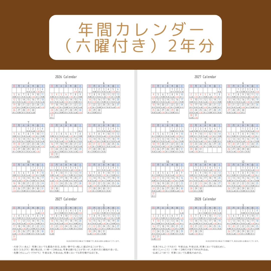 ・2年分の年間カレンダー(六曜付き)
